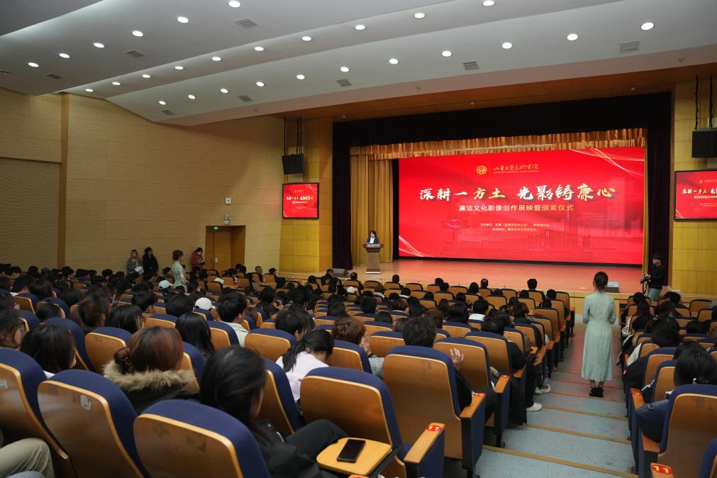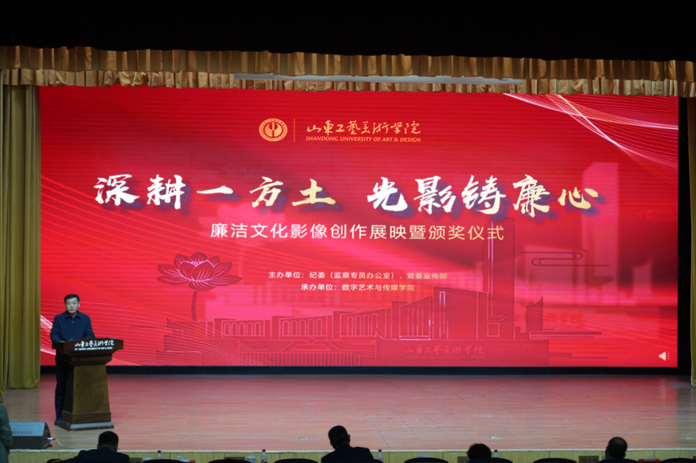 为深入学习贯彻党的二十届四中全会精神,扎实推进新时代廉洁文化建设,12月10日下午,学校在长清校区学术报告厅举行“深耕‘一方土’光影铸廉心”廉洁文化影像创作展映暨颁奖仪式。党委书记王晓娟,党委副书记韩世春,党委委员、副院长孙大刚,党委委员、纪委书记、监察专员谷朝勇,党委委员、宣传部部长孙磊,党委委员、组织部部长弭友海出席活动。